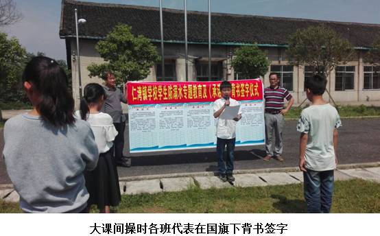 近日,该校除了按教育局开展防溺水“六个一”动做外(挂一张图、唱一首歌、发一封信、看一次专题片、上一次课、写一篇不雅后感),特添加一个“狠”动做:要求每个学生对《仁湾镇学校学生防溺水“六不”许诺书》到班从任处背字。勾当过程是:正在大课间操上,全校举行背字典礼,各班代表正在国旗下背字;正在读报课上,学校给每个班级教室黑板左边贴上一张永世性的《学生防溺水“六不”许诺书》,学生先集体背书,最初个个正在《许诺书》上用记号笔签上本人的名字。这一勾当给学生思惟上很大的震憾,极大的提高了学生防溺水平安认识。(蒋剑中)。