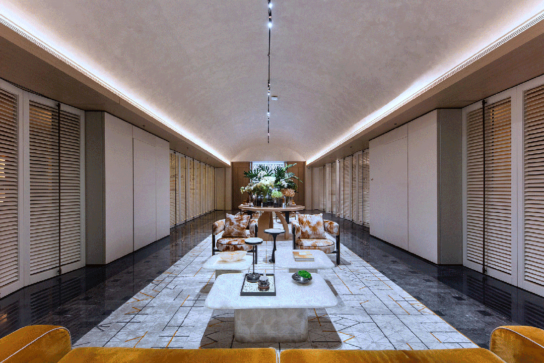 同时,通过 下沉天井 引入天然光取景不雅,消弭了保守地下空间的压制感,营制出 敞亮、艺术、充满朝气 的空气。