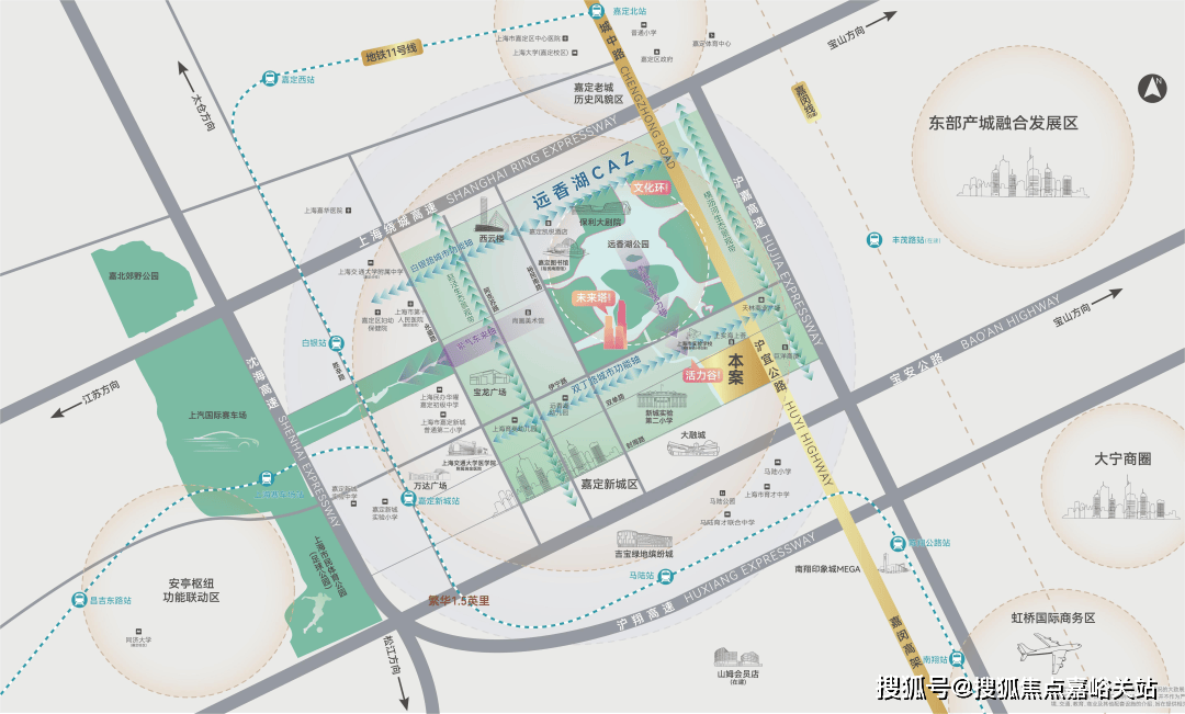 项目就位于远喷鼻湖CAZ焦点,远喷鼻湖CAZ位于嘉定新城的焦点区域,是嘉定新城的分析功能核心、城市抽象的集中展示区;规划为国际住区、大型贸易集群、摩六合标集群、科创科研企业集群、国际教育文化等功能集聚复合区。